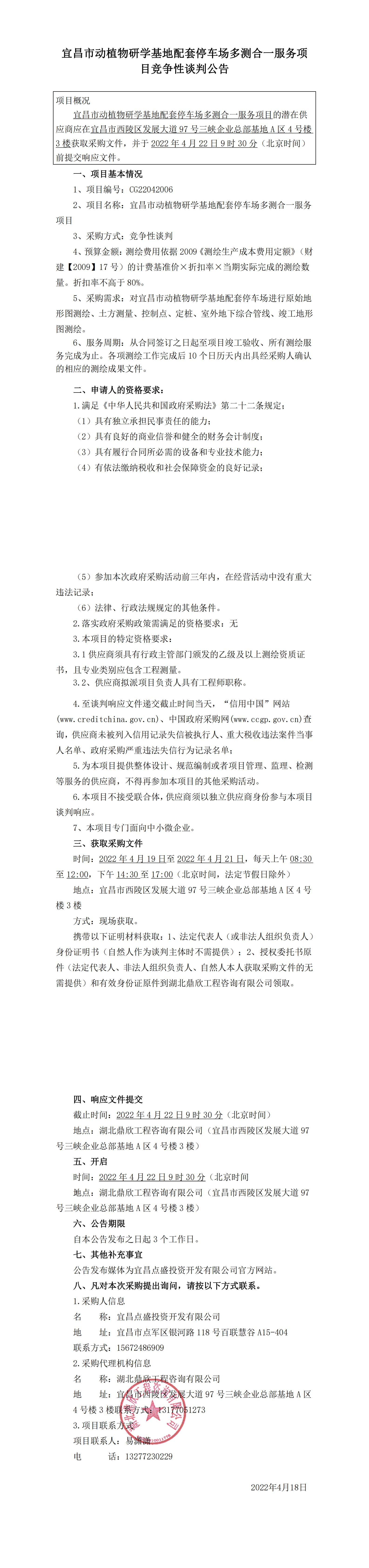 宜昌市動(dòng)植物研學(xué)基地配套停車場(chǎng)多測(cè)合一服務(wù)項(xiàng)目競(jìng)爭(zhēng)性談判公告