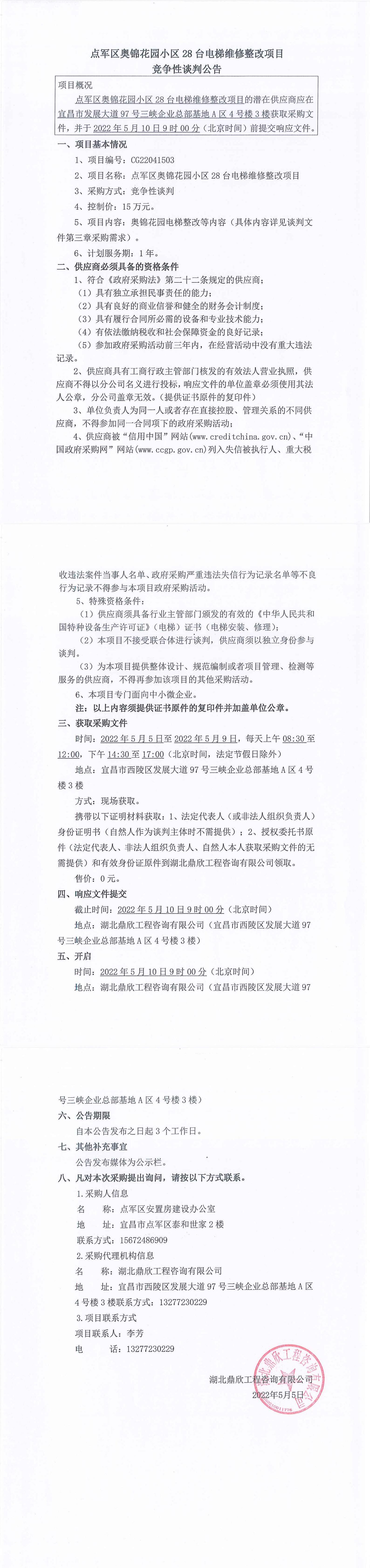 點(diǎn)軍區(qū)奧錦花園小區(qū)28臺電梯維修整改項(xiàng)目談判公告