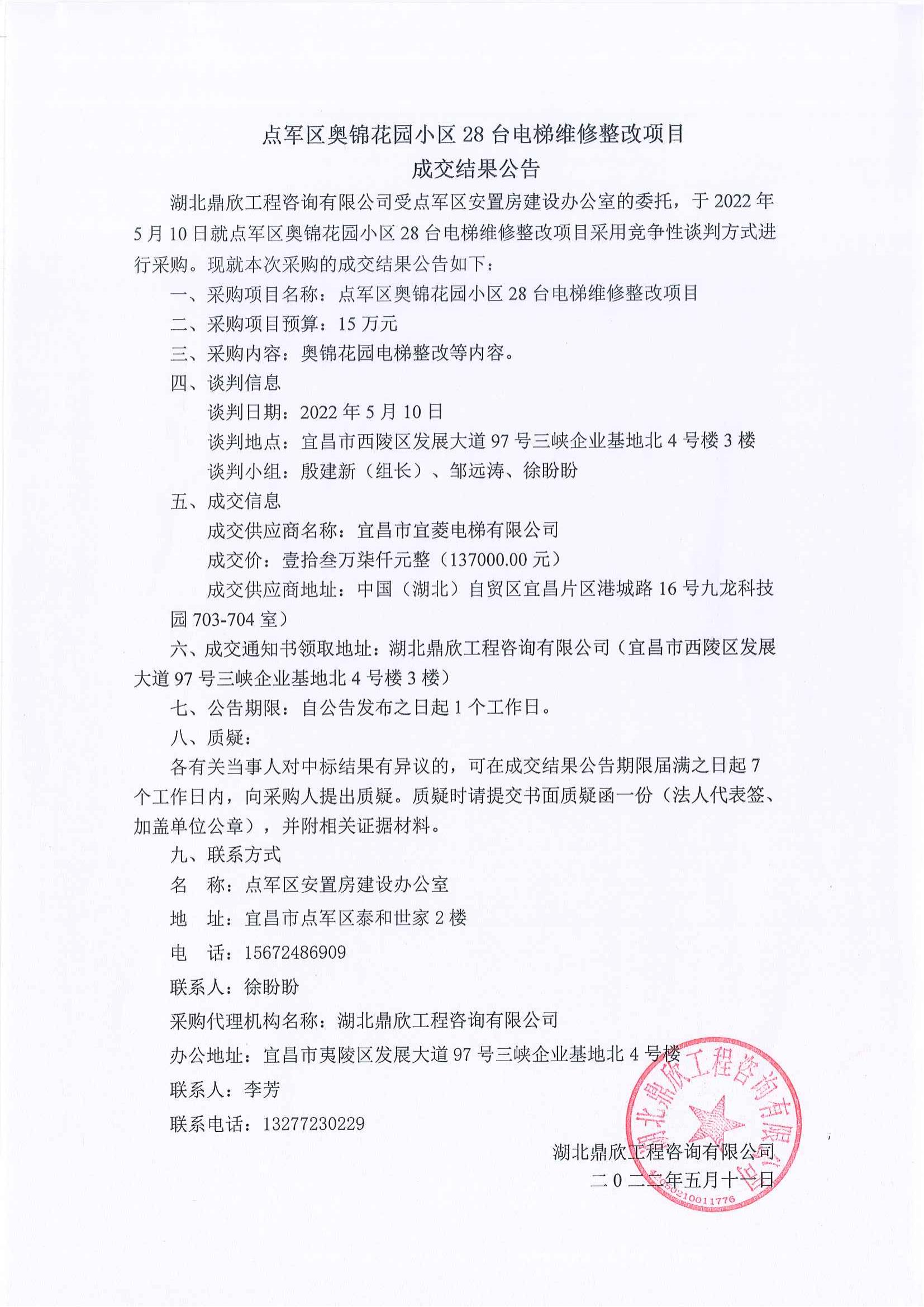 點(diǎn)軍區(qū)奧錦花園小區(qū)28臺(tái)電梯維修整改項(xiàng)目成交公告