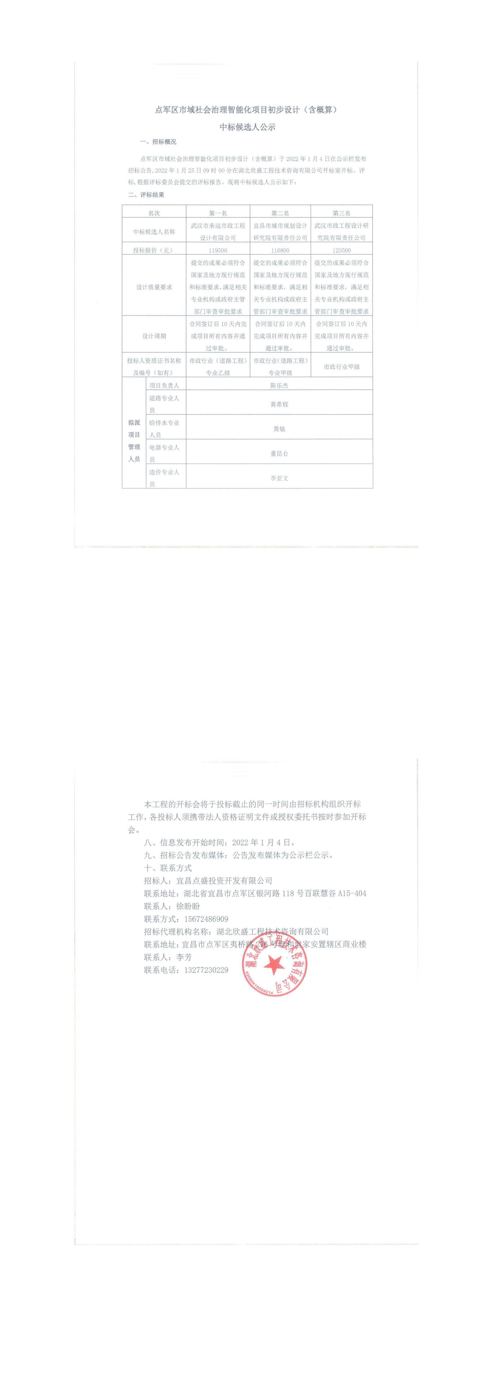 點(diǎn)軍區(qū)市域社會治理智能化項(xiàng)目初步設(shè)計(jì)(含概算)中標(biāo)候選人公示