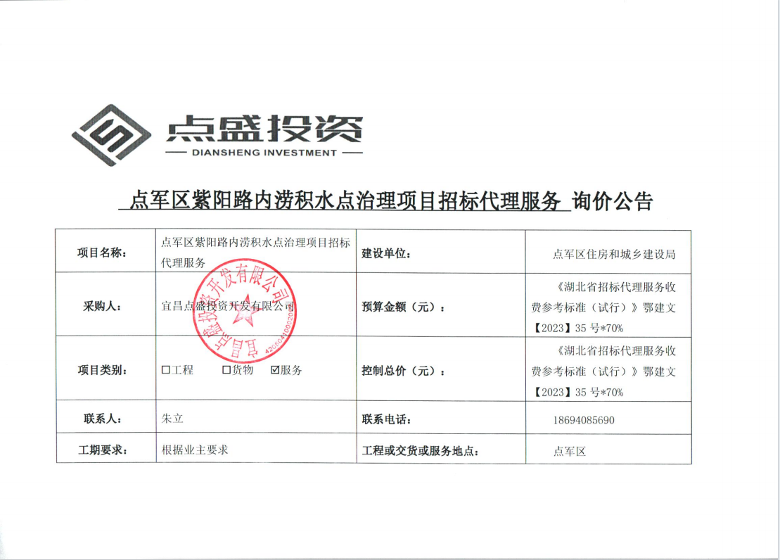 點軍區(qū)紫陽路內(nèi)澇積水點治理項目招標(biāo)代理服務(wù)詢價公告