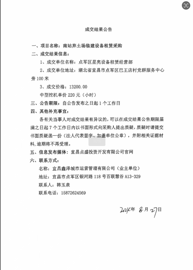 南站路棄土場臨建設(shè)備租賃采購項目成交公告