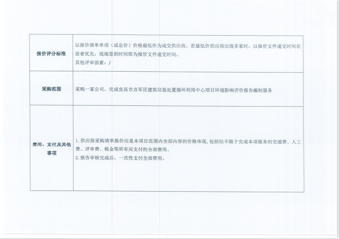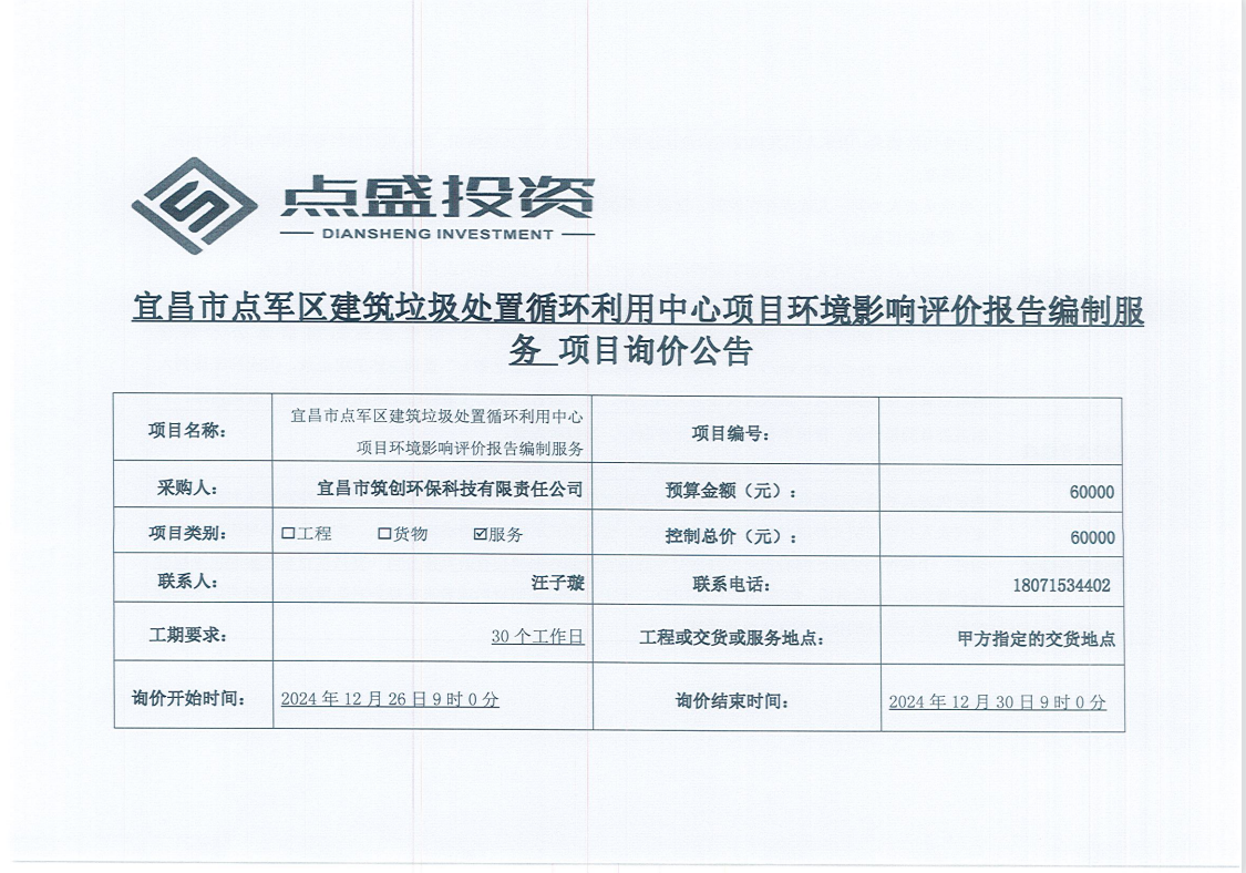 宜昌市點軍區(qū)建筑垃圾處置循環(huán)利用中心項目環(huán)境影響評價報告編制服務項目詢價公告